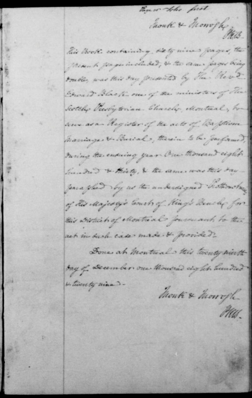 St. Paul's Presbyterian Church, 1830-1918, Archives nationales à Montréal, Fonds Cour supérieure. District judiciaire de Montréal. État civil, (06M,CE601,S130).