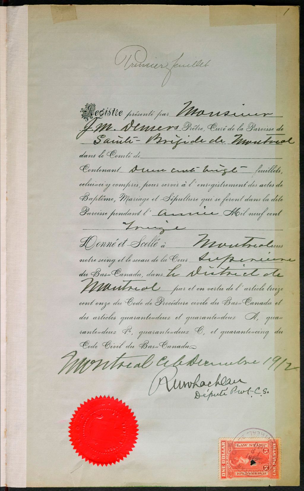 Sainte-Brigide, 1872-1922, Archives nationales à Montréal, Fonds Cour supérieure. District judiciaire de Montréal. État civil, (06M,CE601,S15).