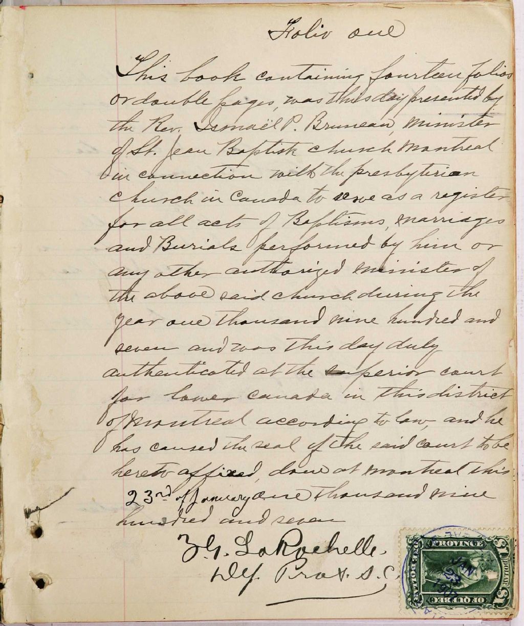Église presbytérienne du Sauveur, 1877-1922, Archives nationales à Montréal, Fonds Cour supérieure. District judiciaire de Montréal. État civil, (06M,CE601,S151).