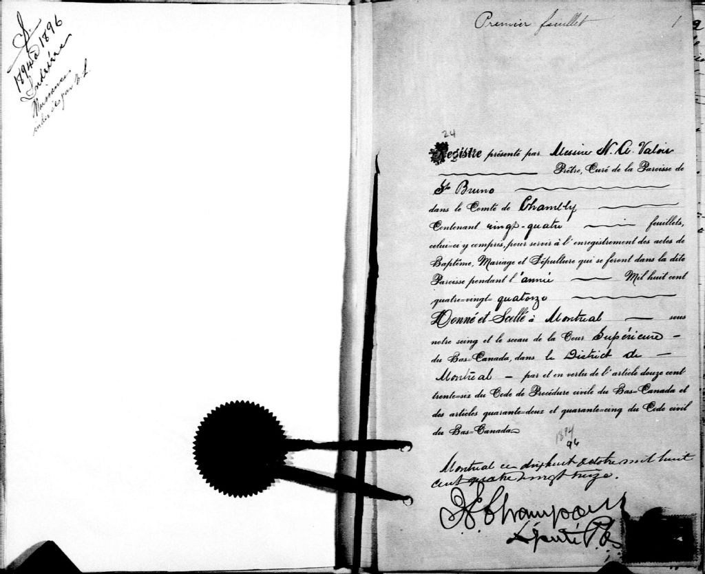 Saint-Bruno-de-Montarville, 1843-1922, Archives nationales à Montréal, Fonds Cour supérieure. District judiciaire de Montréal. État civil, (06M,CE601,S16).