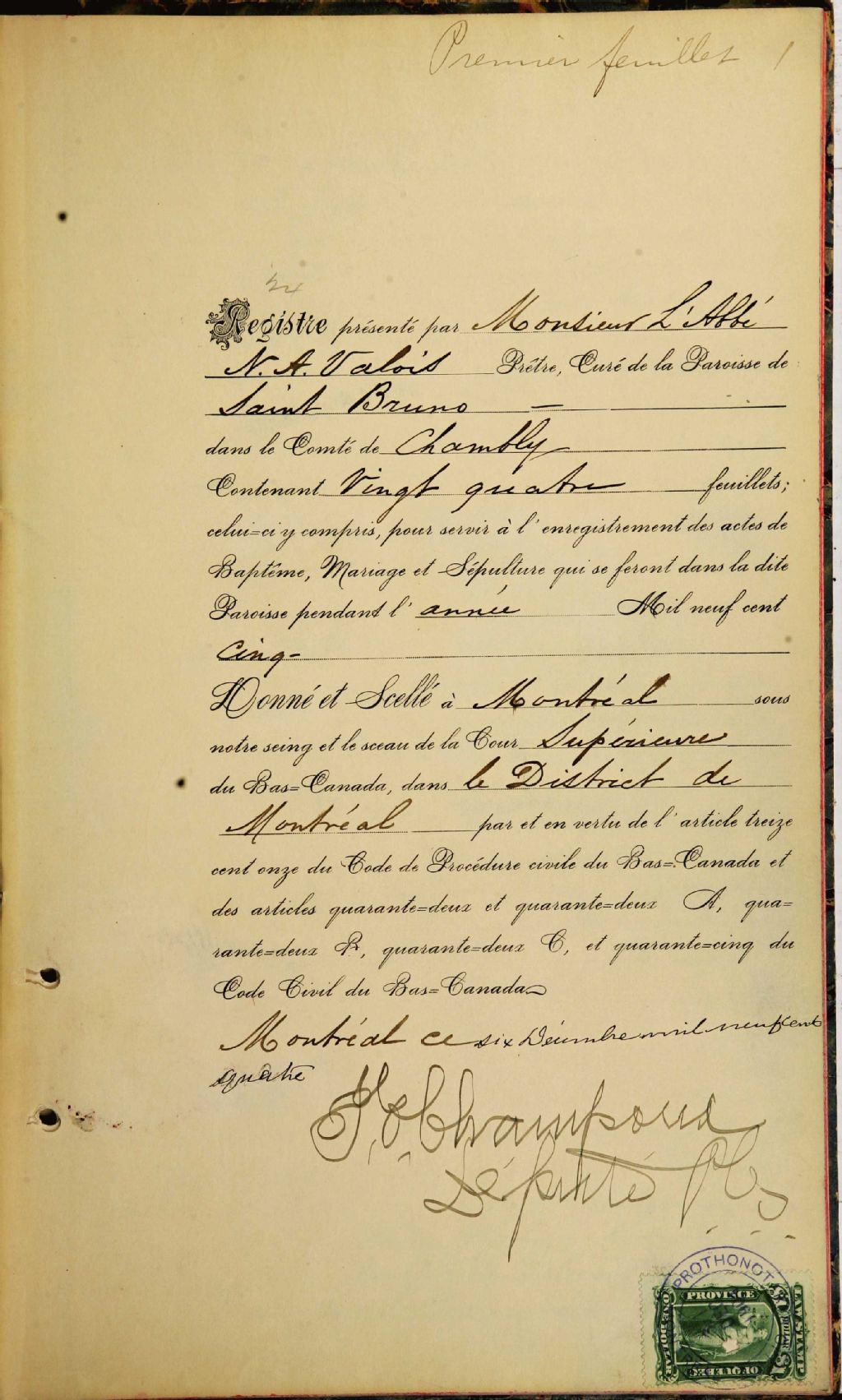 Saint-Bruno-de-Montarville, 1843-1922, Archives nationales à Montréal, Fonds Cour supérieure. District judiciaire de Montréal. État civil, (06M,CE601,S16).