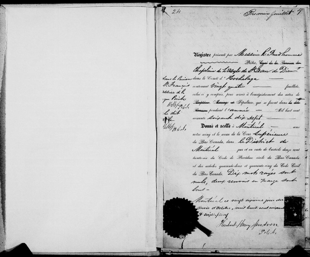 Saint-Jean-de-Dieu, 1877-1922, Archives nationales à Montréal, Fonds Cour supérieure. District judiciaire de Montréal. État civil, (06M,CE601,S160).