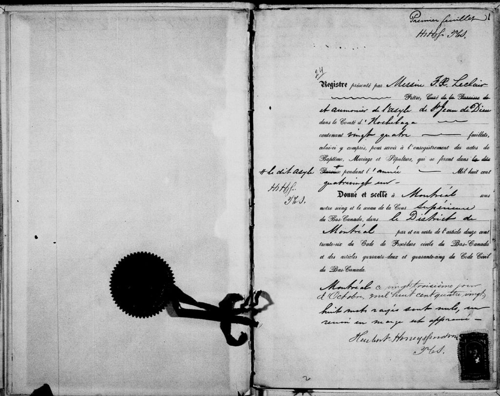Saint-Jean-de-Dieu, 1877-1922, Archives nationales à Montréal, Fonds Cour supérieure. District judiciaire de Montréal. État civil, (06M,CE601,S160).