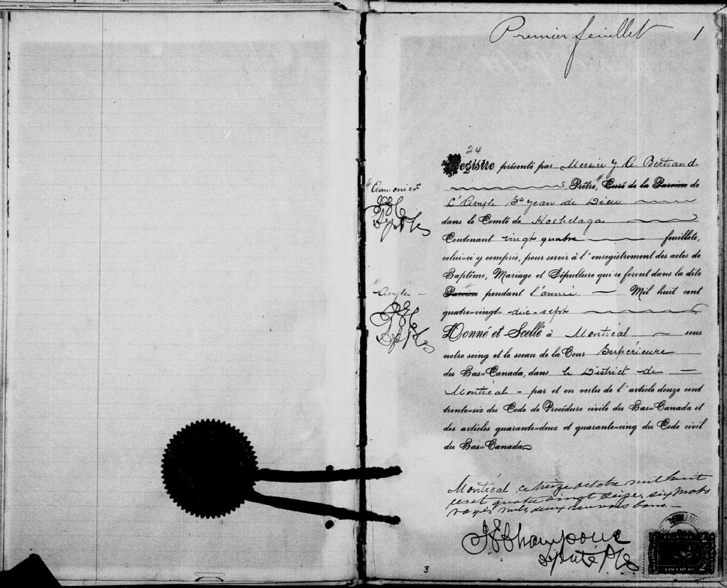 Saint-Jean-de-Dieu, 1877-1922, Archives nationales à Montréal, Fonds Cour supérieure. District judiciaire de Montréal. État civil, (06M,CE601,S160).
