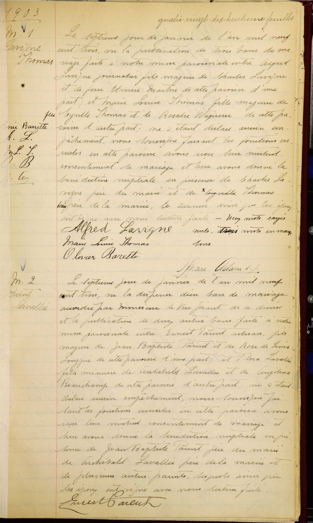 L'Immaculée-Conception de Montréal, 1888-1922, Archives nationales à Montréal, Fonds Cour supérieure. District judiciaire de Montréal. État civil, (06M,CE601,S161).