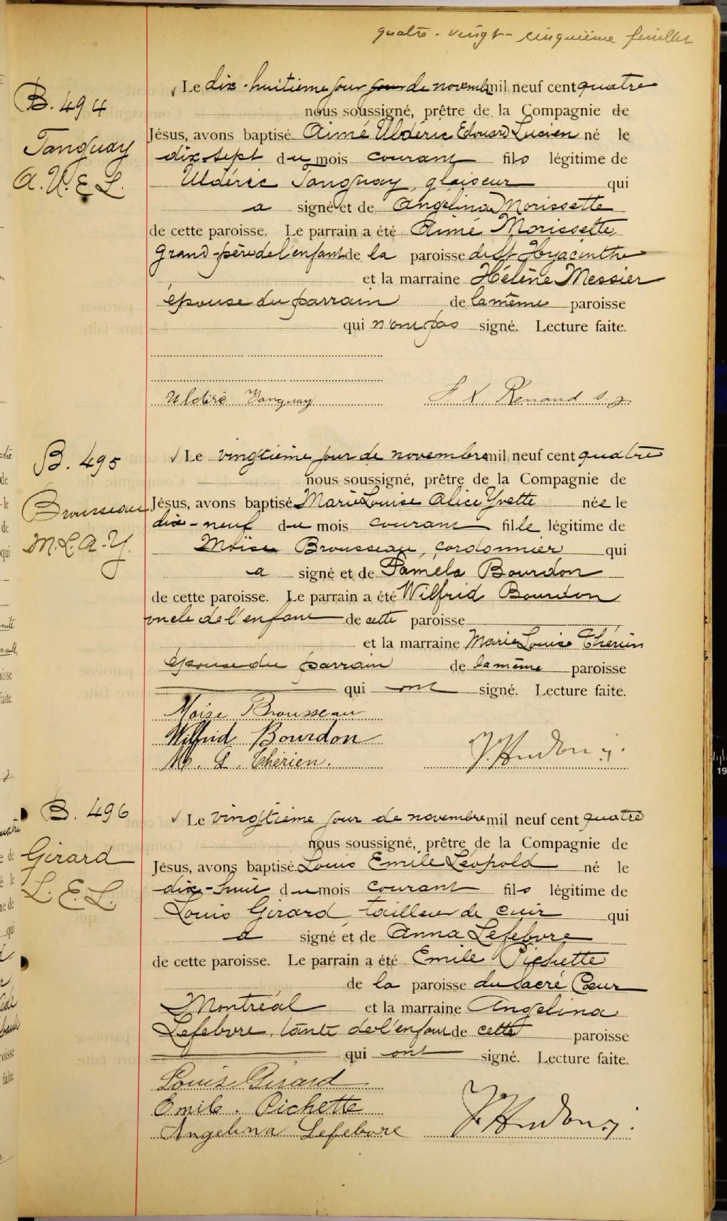 L'Immaculée-Conception de Montréal, 1888-1922, Archives nationales à Montréal, Fonds Cour supérieure. District judiciaire de Montréal. État civil, (06M,CE601,S161).