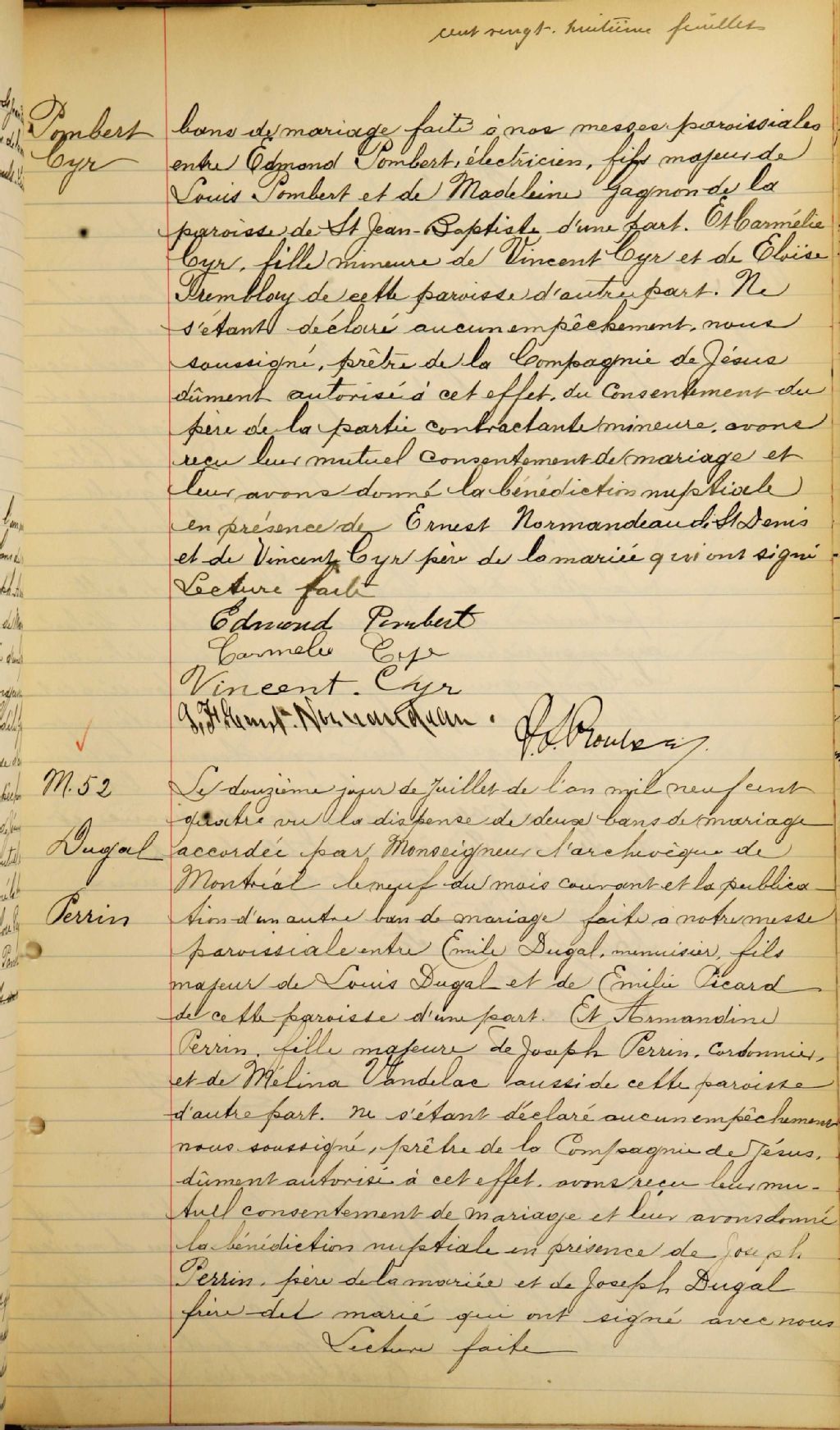 L'Immaculée-Conception de Montréal, 1888-1922, Archives nationales à Montréal, Fonds Cour supérieure. District judiciaire de Montréal. État civil, (06M,CE601,S161).