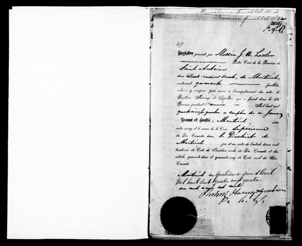 Saint Anthony, 1884-1922, Archives nationales à Montréal, Fonds Cour supérieure. District judiciaire de Montréal. État civil, (06M,CE601,S165).