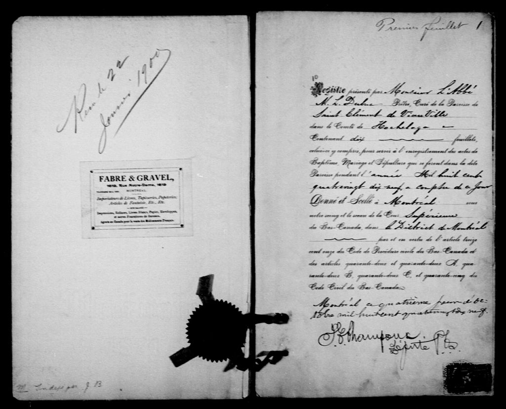 Saint-Clément, 1899-1922, Archives nationales à Montréal, Fonds Cour supérieure. District judiciaire de Montréal. État civil, (06M,CE601,S168).