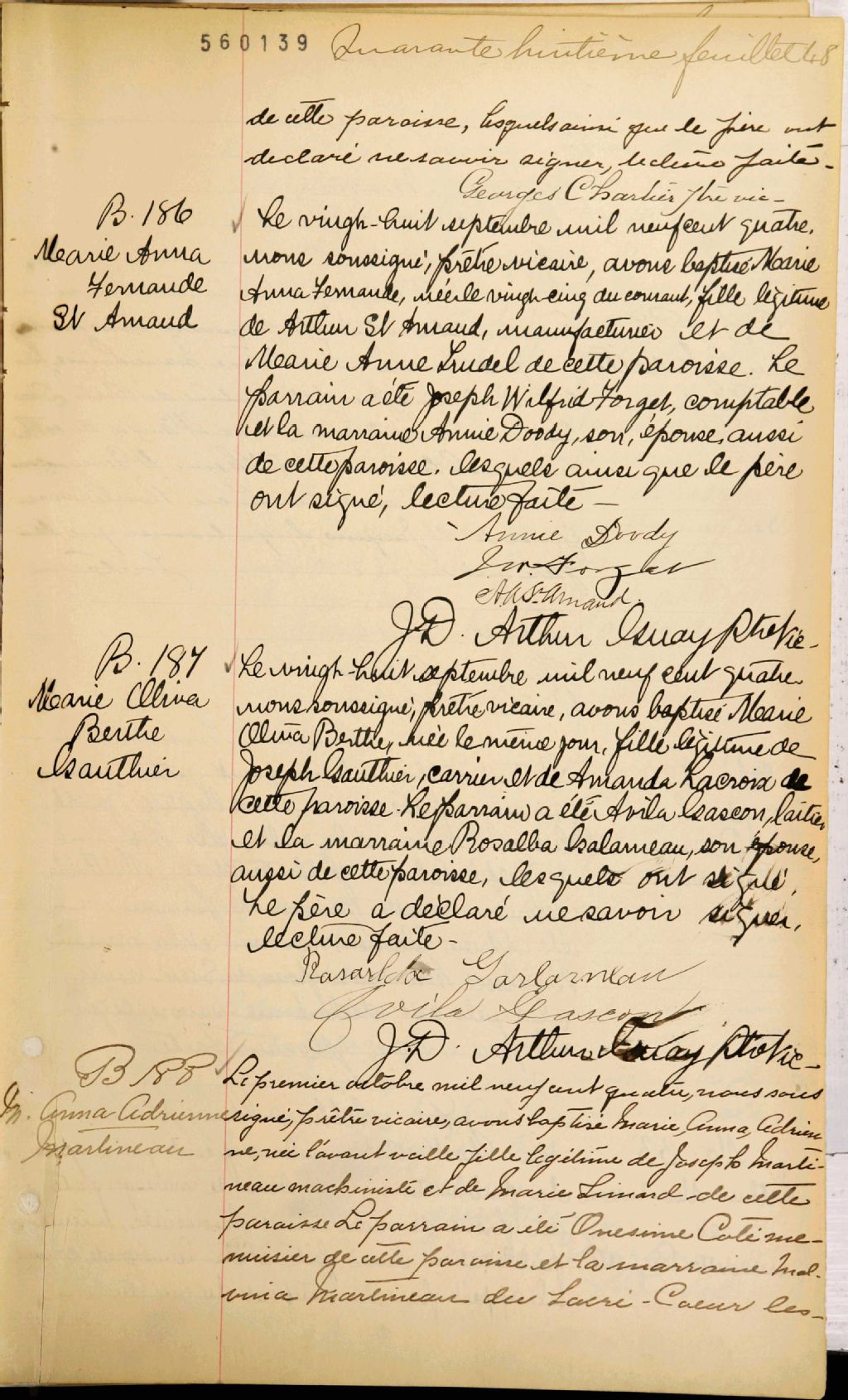 Saint-Denis, 1899-1921, Archives nationales à Montréal, Fonds Cour supérieure. District judiciaire de Montréal. État civil, (06M,CE601,S169).