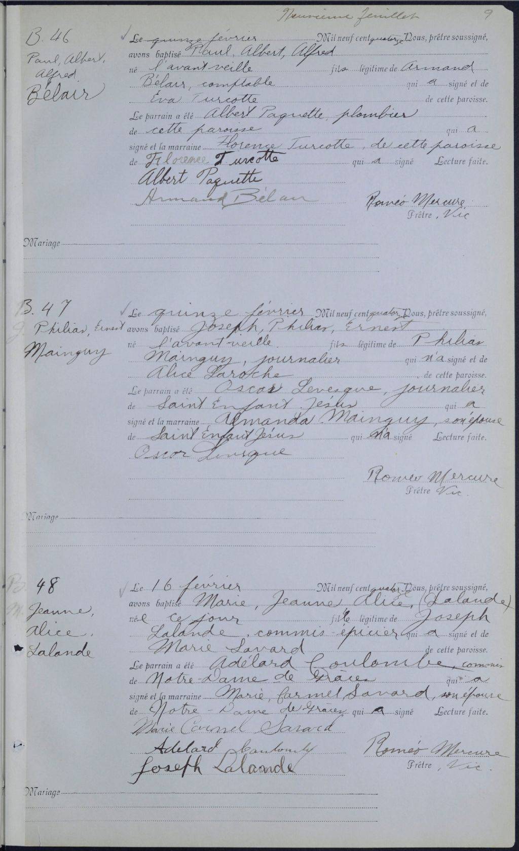 Saint-Denis, 1899-1921, Archives nationales à Montréal, Fonds Cour supérieure. District judiciaire de Montréal. État civil, (06M,CE601,S169).
