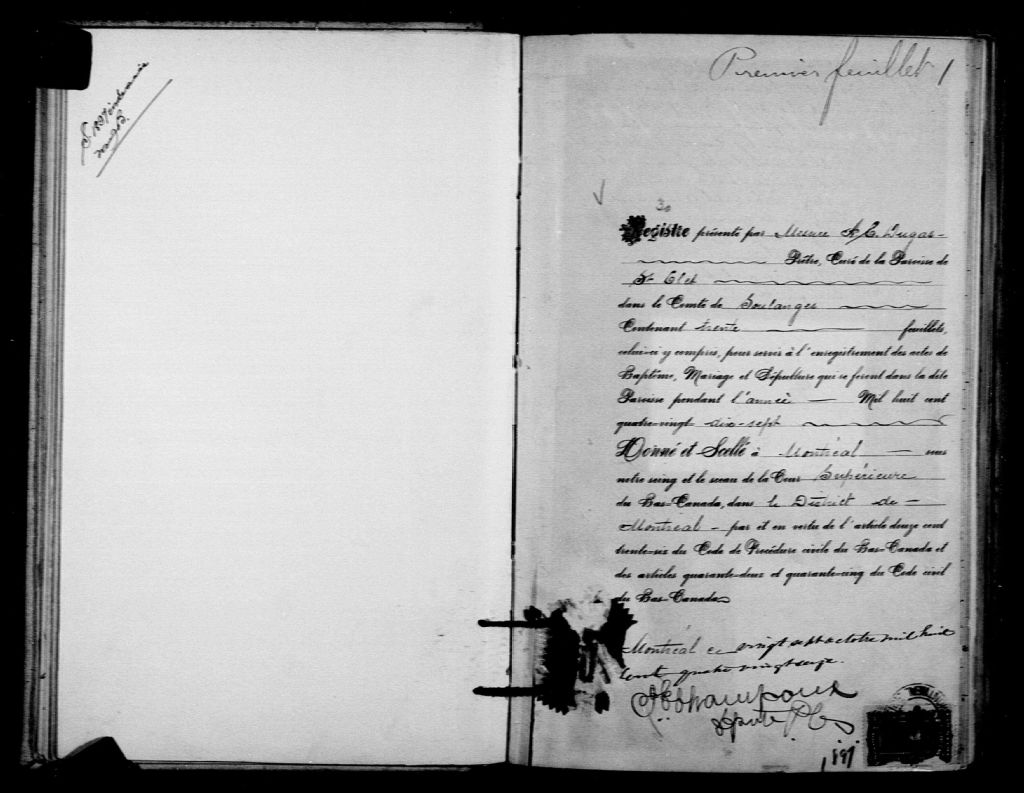 Saint-Clet, 1851-1922, Archives nationales à Montréal, Fonds Cour supérieure. District judiciaire de Montréal. État civil, (06M,CE601,S17).