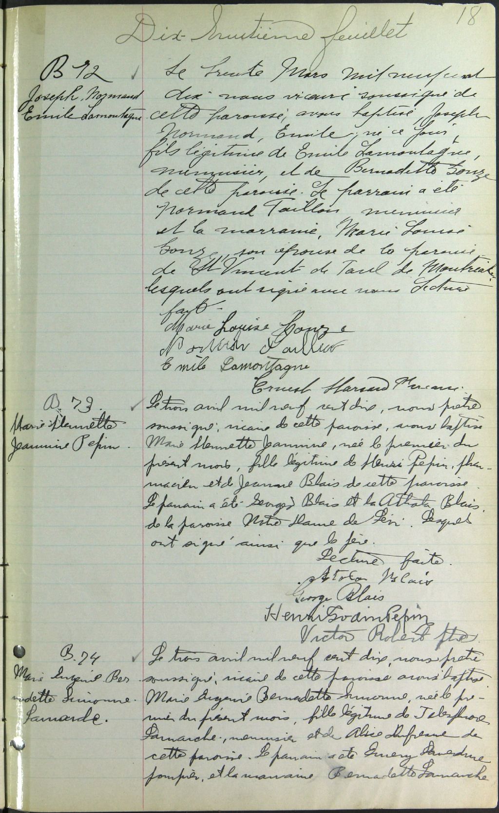 Saint-Eusèbe-de-Verceil, 1897-1922, Archives nationales à Montréal, Fonds Cour supérieure. District judiciaire de Montréal. État civil, (06M,CE601,S170).
