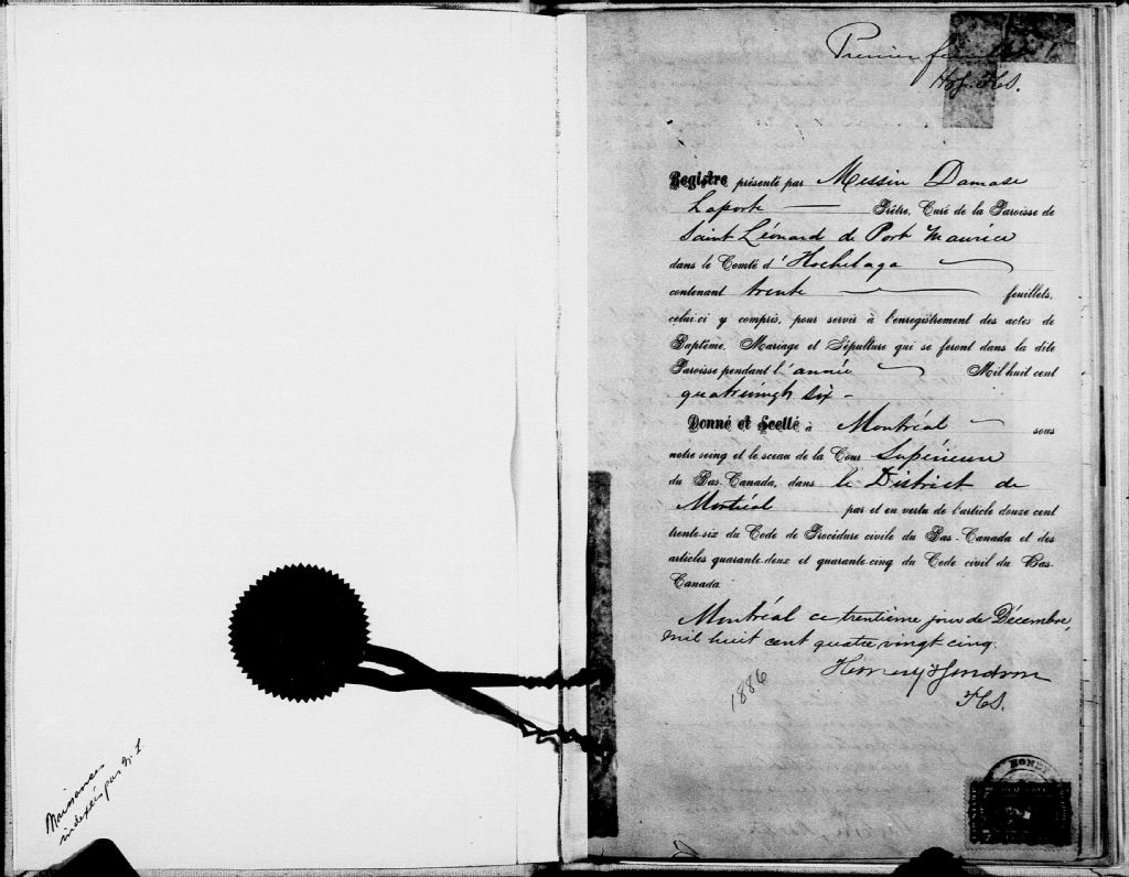 Saint-Léonard-de-Port-Maurice, 1886-1922, Archives nationales à Montréal, Fonds Cour supérieure. District judiciaire de Montréal. État civil, (06M,CE601,S172).