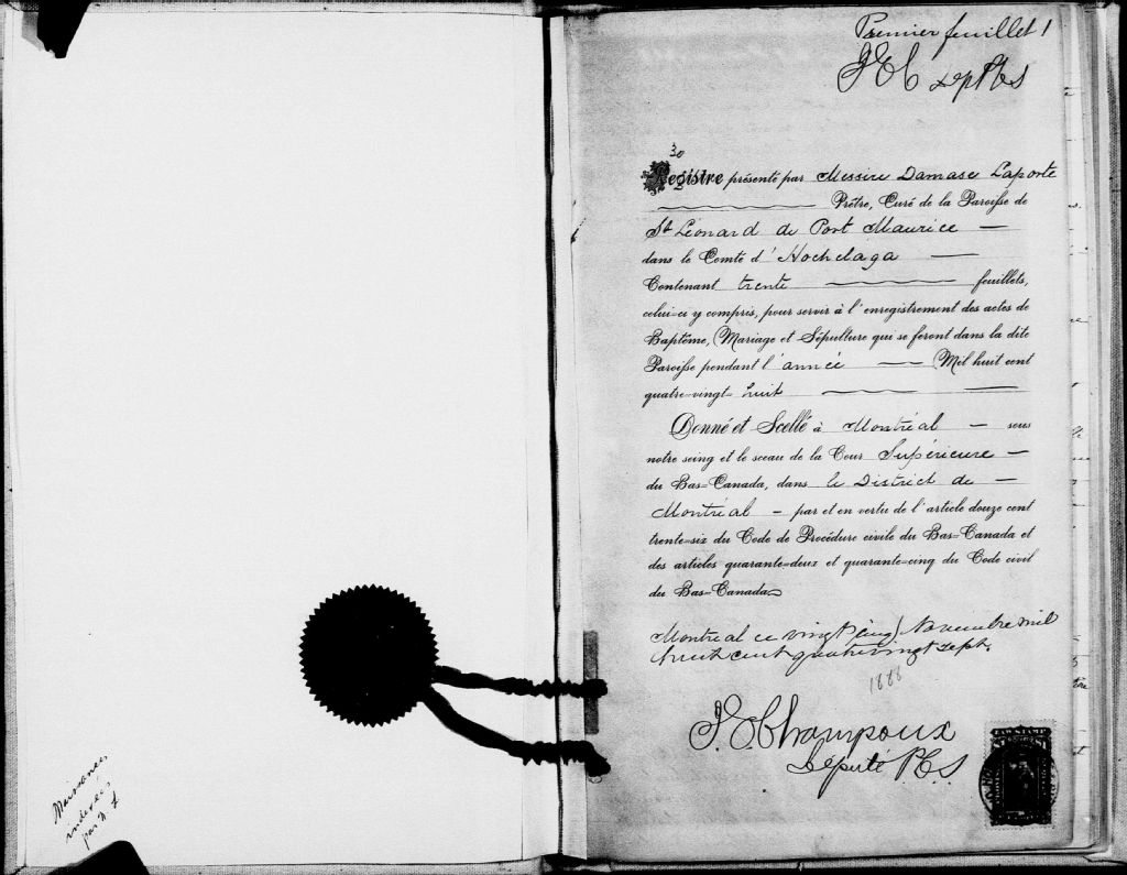Saint-Léonard-de-Port-Maurice, 1886-1922, Archives nationales à Montréal, Fonds Cour supérieure. District judiciaire de Montréal. État civil, (06M,CE601,S172).