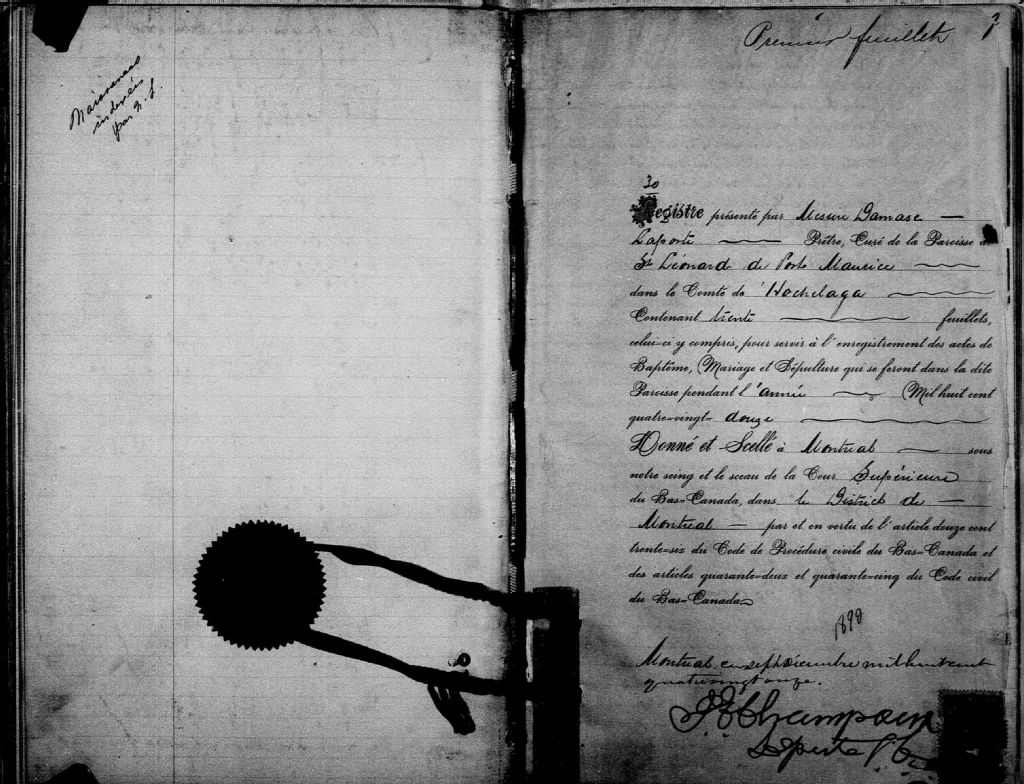 Saint-Léonard-de-Port-Maurice, 1886-1921, Archives nationales à Montréal, Fonds Cour supérieure. District judiciaire de Montréal. État civil, (06M,CE601,S172).