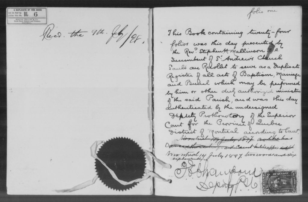 St. Andrew's Anglican Church, 1897-1921, Archives nationales à Montréal, Fonds Cour supérieure. District judiciaire de Montréal. État civil, (06M,CE601,S184).