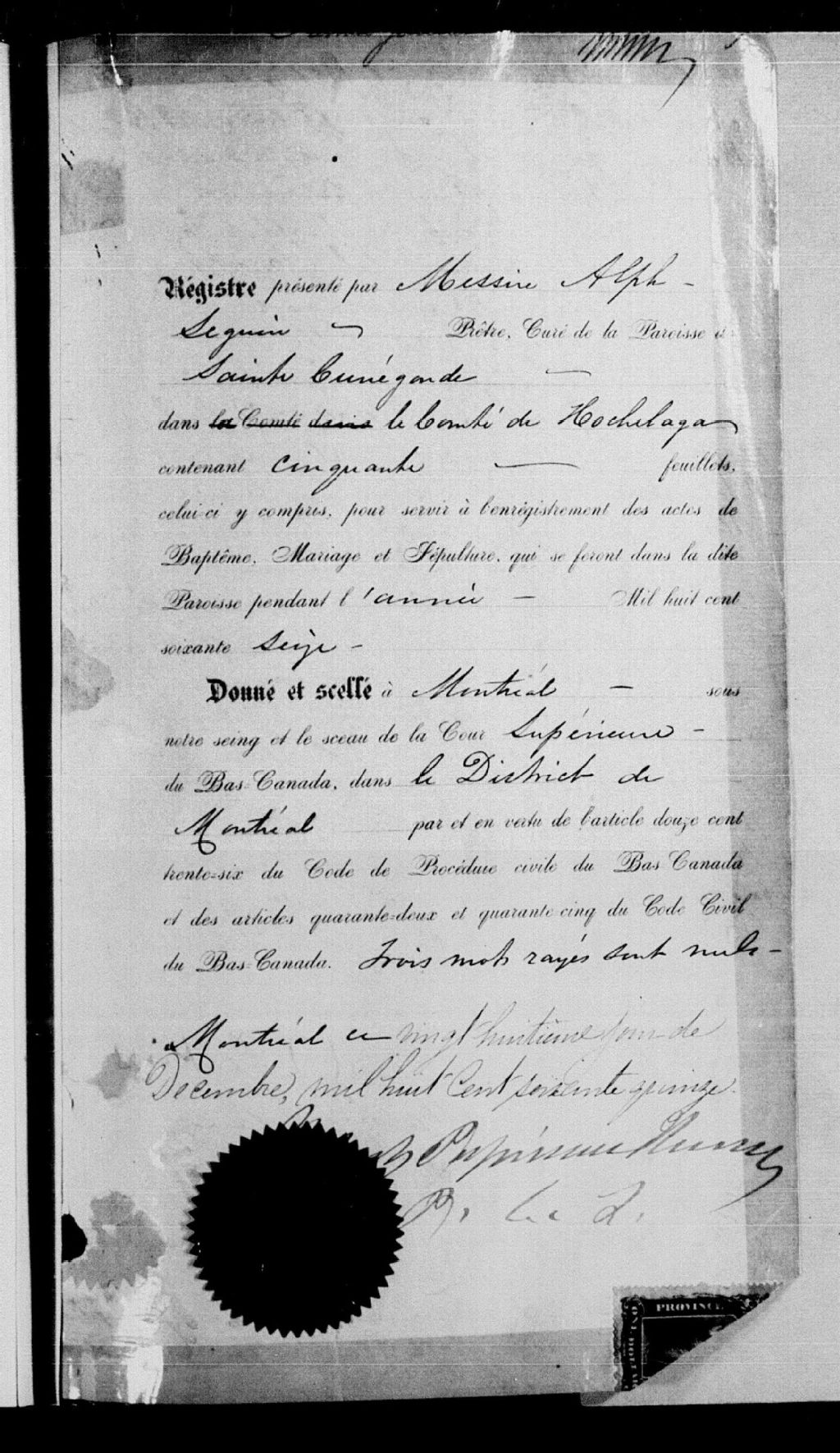 Sainte-Cunégonde, 1874-1922, Archives nationales à Montréal, Fonds Cour supérieure. District judiciaire de Montréal. État civil, (06M,CE601,S19).