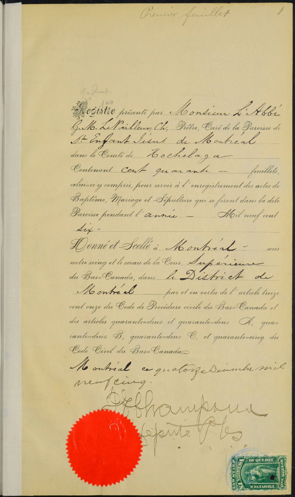 Saint-Enfant-Jésus, 1864-1922, Archives nationales à Montréal, Fonds Cour supérieure. District judiciaire de Montréal. État civil, (06M,CE601,S21).