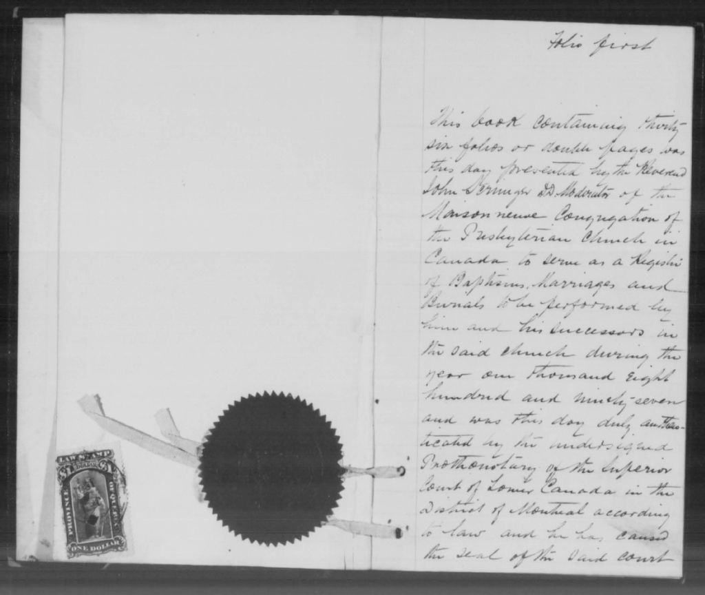 Maisonneuve Presbyterian Church, 1897-1921, Archives nationales à Montréal, Fonds Cour supérieure. District judiciaire de Montréal. État civil, (06M,CE601,S216).
