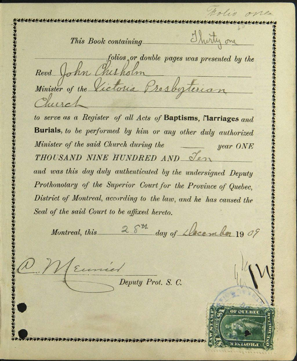 Victoria Presbyterian Church, 1893-1921, Archives nationales à Montréal, Fonds Cour supérieure. District judiciaire de Montréal. État civil, (06M,CE601,S222).