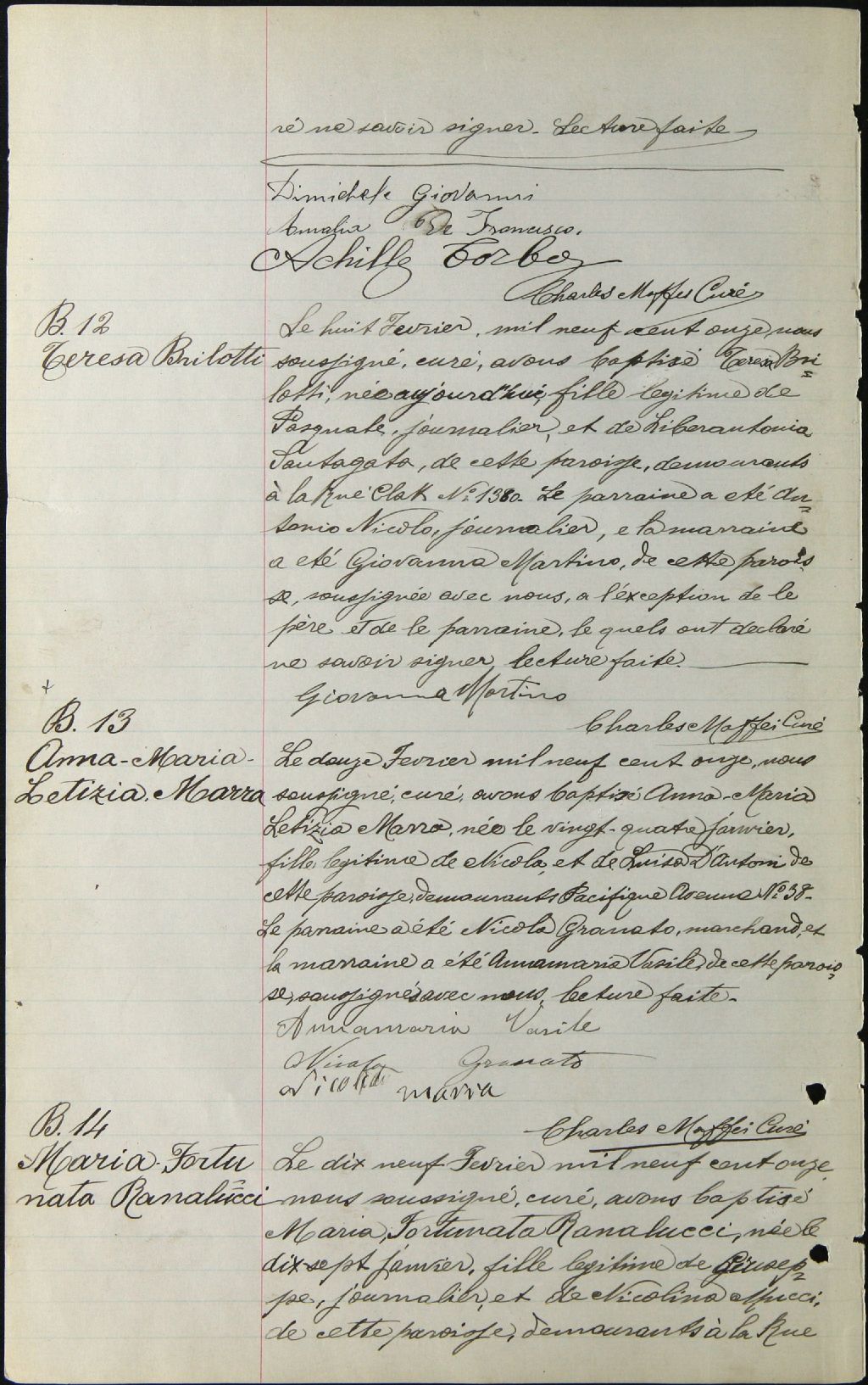 Notre-Dame-Della-Difesa, 1910-1922, Archives nationales à Montréal, Fonds Cour supérieure. District judiciaire de Montréal. État civil, (06M,CE601,S231).