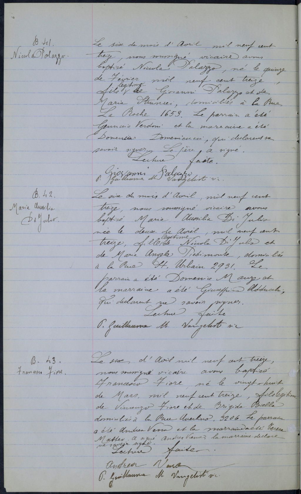 Notre-Dame-Della-Difesa, 1910-1922, Archives nationales à Montréal, Fonds Cour supérieure. District judiciaire de Montréal. État civil, (06M,CE601,S231).