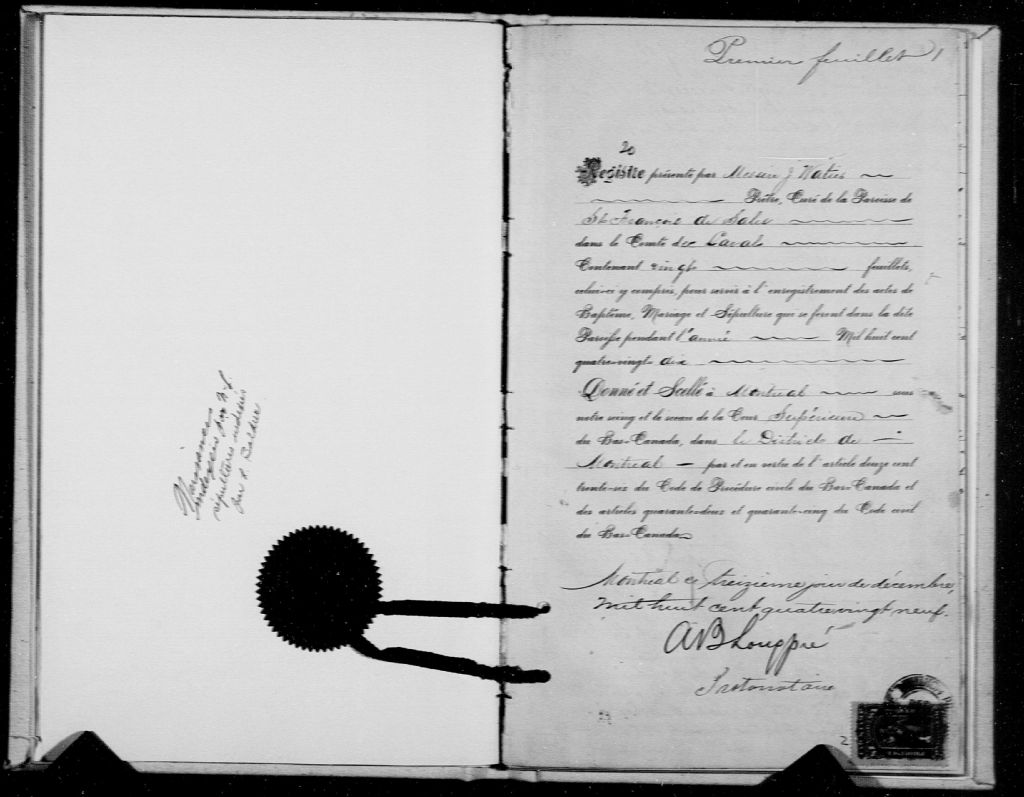 Saint-François-de-Sales-de-l'Île-Jésus, 1702-1922, Archives nationales à Montréal, Fonds Cour supérieure. District judiciaire de Montréal. État civil, (06M,CE601,S24).