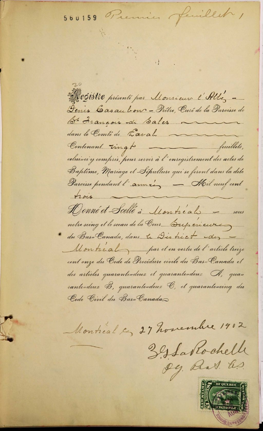 Saint-François-de-Sales-de-l'Île-Jésus, 1702-1922, Archives nationales à Montréal, Fonds Cour supérieure. District judiciaire de Montréal. État civil, (06M,CE601,S24).