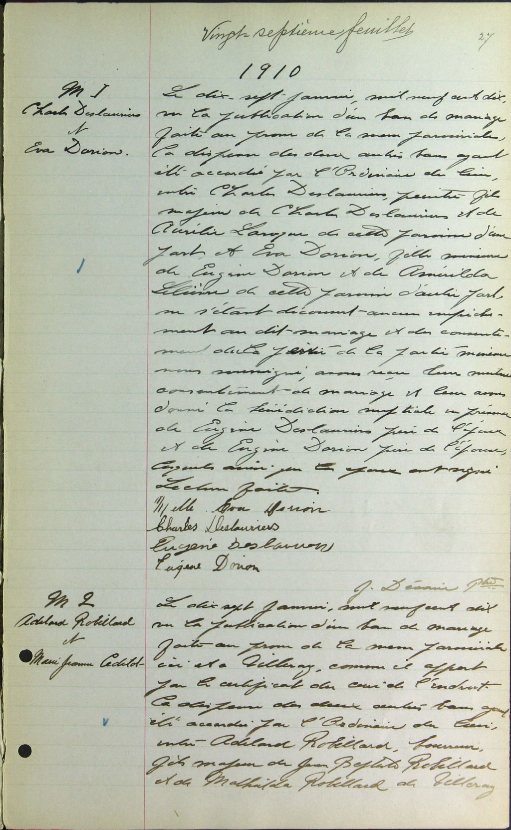 Saint-Arsène, 1907-1922, Archives nationales à Montréal, Fonds Cour supérieure. District judiciaire de Montréal. État civil, (06M,CE601,S240).