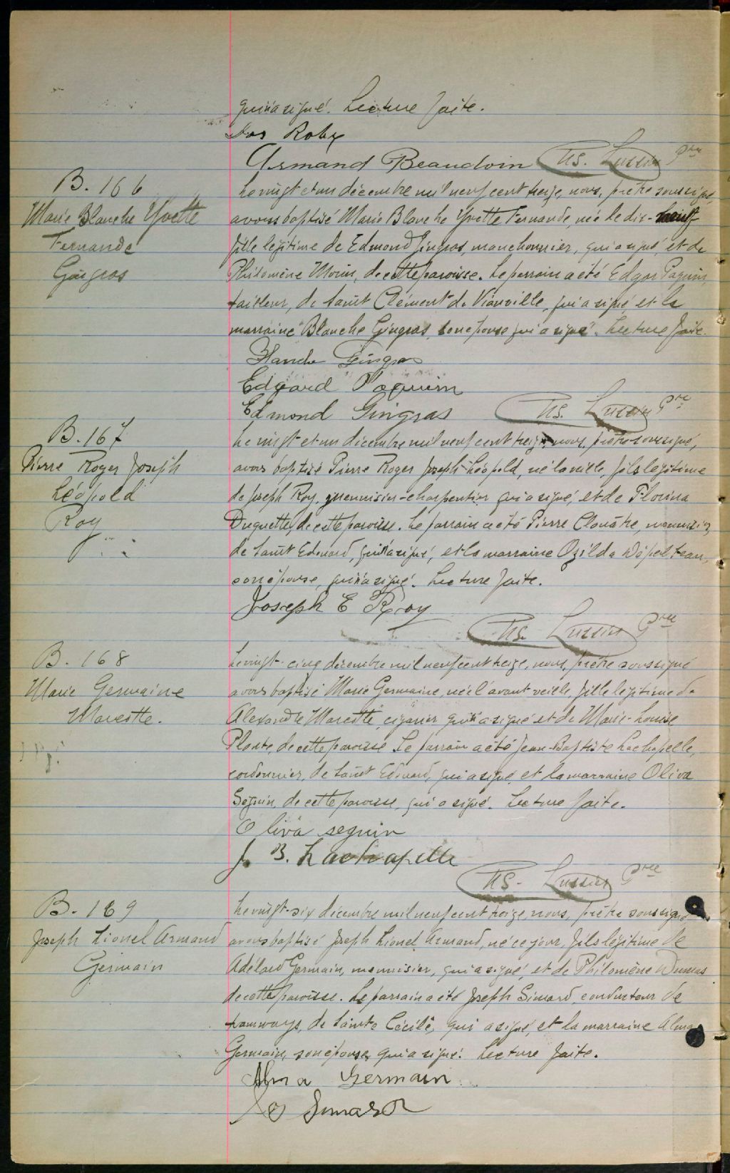 Saint-Arsène, 1907-1920, Archives nationales à Montréal, Fonds Cour supérieure. District judiciaire de Montréal. État civil, (06M,CE601,S240).