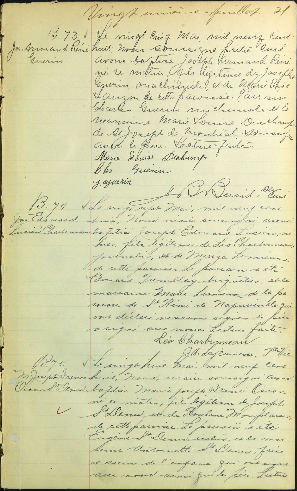 Saint-Irénée, 1904-1921, Archives nationales à Montréal, Fonds Cour supérieure. District judiciaire de Montréal. État civil, (06M,CE601,S241).