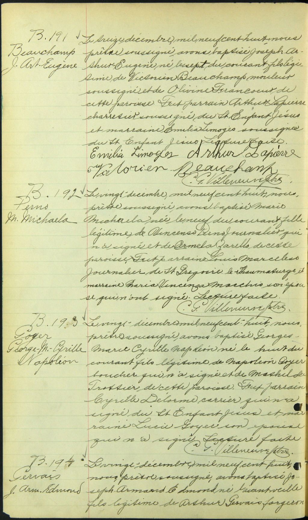 Saint-Jean-de-la-Croix, 1900-1921, Archives nationales à Montréal, Fonds Cour supérieure. District judiciaire de Montréal. État civil, (06M,CE601,S242).