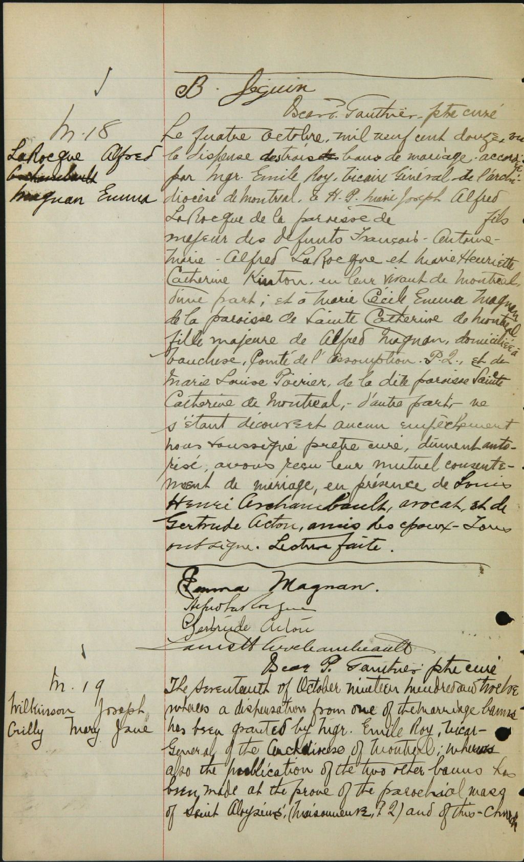 Saint-Léon, Westmount, 1901-1921, Archives nationales à Montréal, Fonds Cour supérieure. District judiciaire de Montréal. État civil, (06M,CE601,S243).