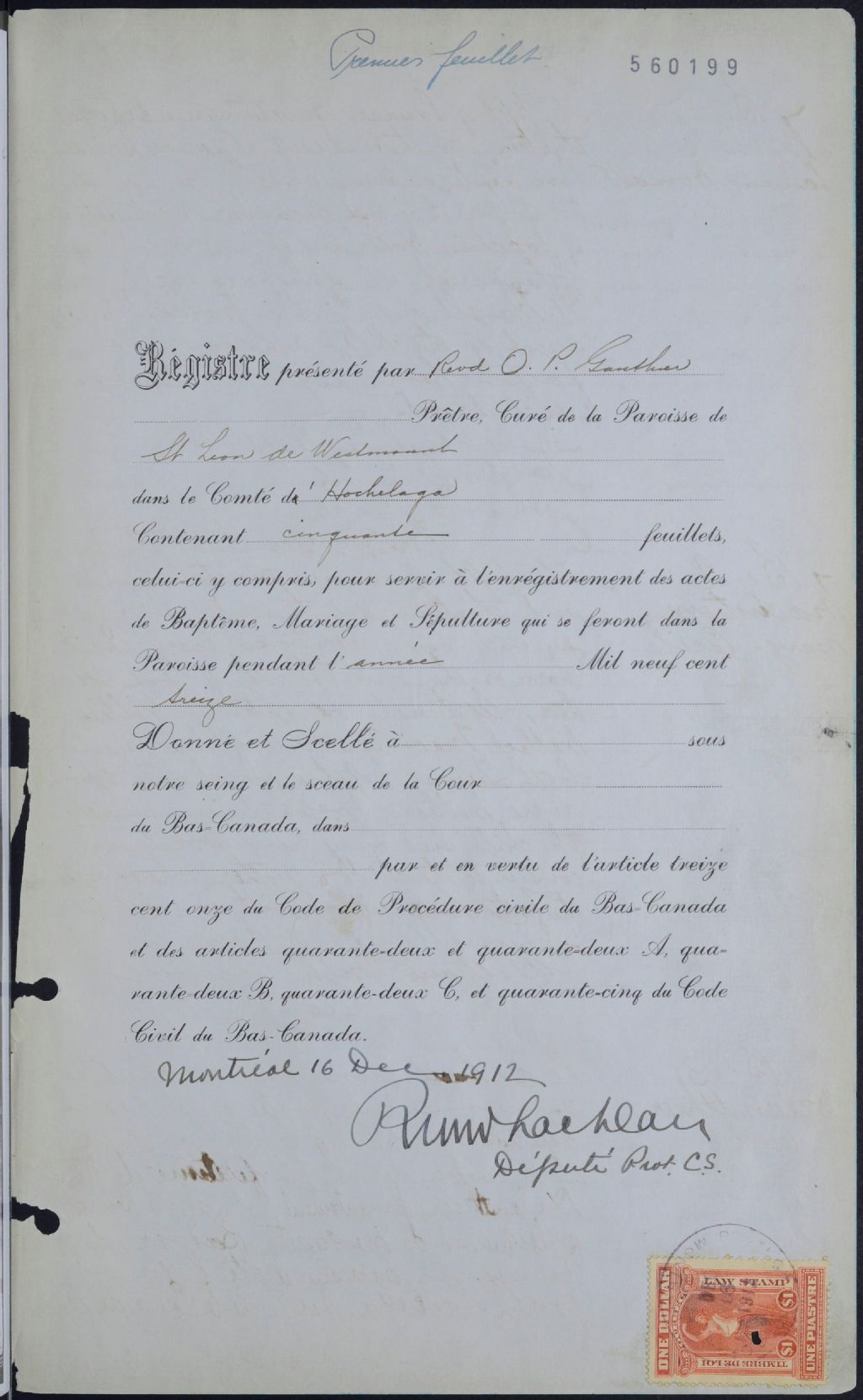 Saint-Léon, Westmount, 1901-1921, Archives nationales à Montréal, Fonds Cour supérieure. District judiciaire de Montréal. État civil, (06M,CE601,S243).