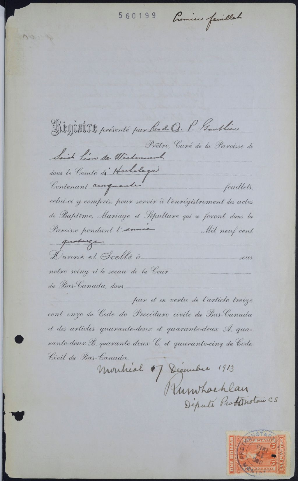 Saint-Léon, Westmount, 1901-1922, Archives nationales à Montréal, Fonds Cour supérieure. District judiciaire de Montréal. État civil, (06M,CE601,S243).