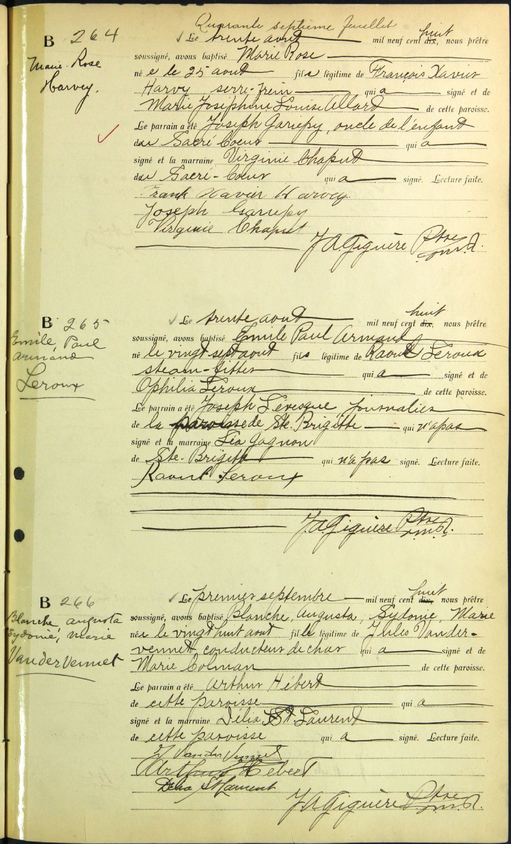 Saint-Pierre-Apôtre, 1900-1921, Archives nationales à Montréal, Fonds Cour supérieure. District judiciaire de Montréal. État civil, (06M,CE601,S245).