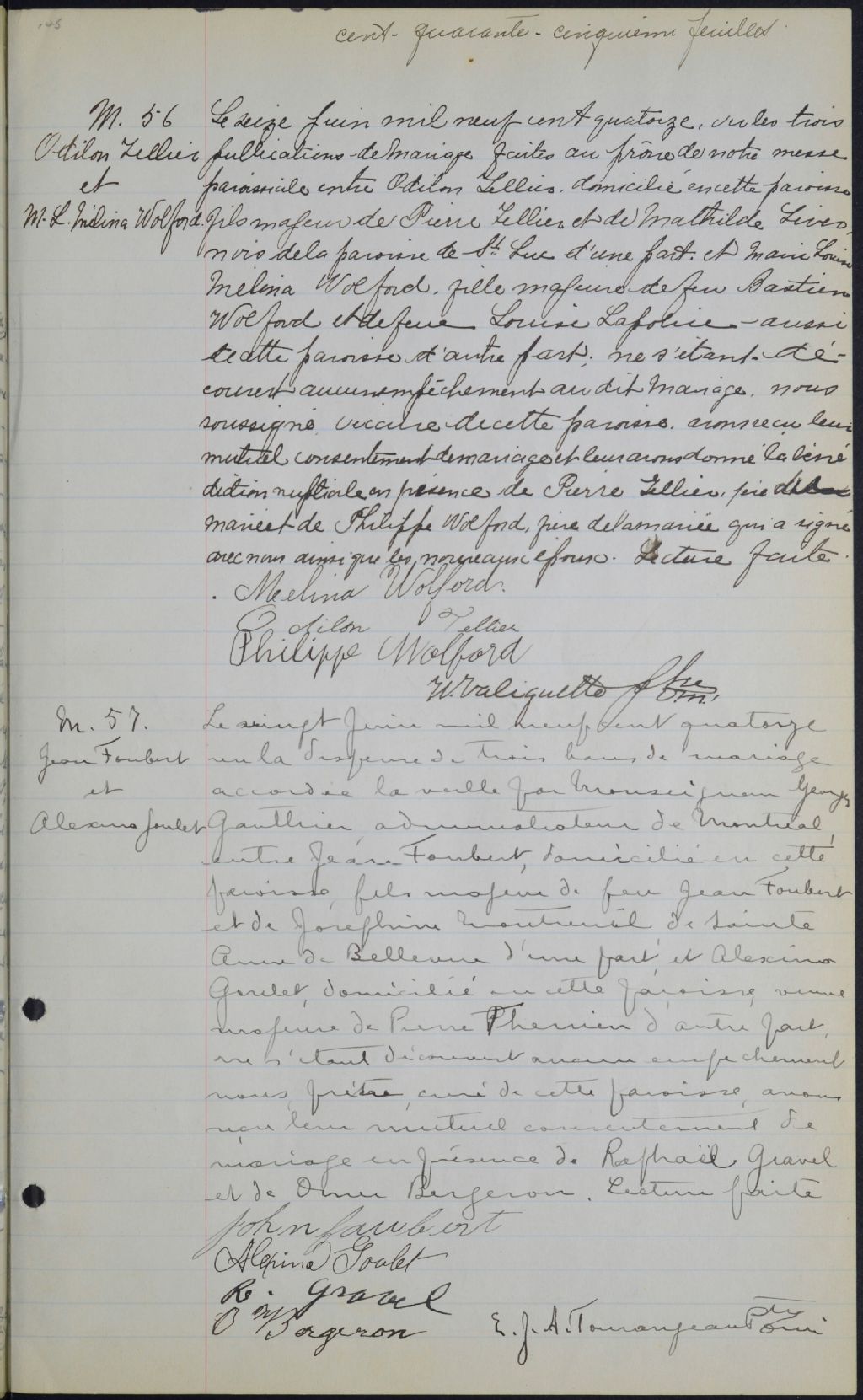 Saint-Pierre-Apôtre, 1900-1921, Archives nationales à Montréal, Fonds Cour supérieure. District judiciaire de Montréal. État civil, (06M,CE601,S245).