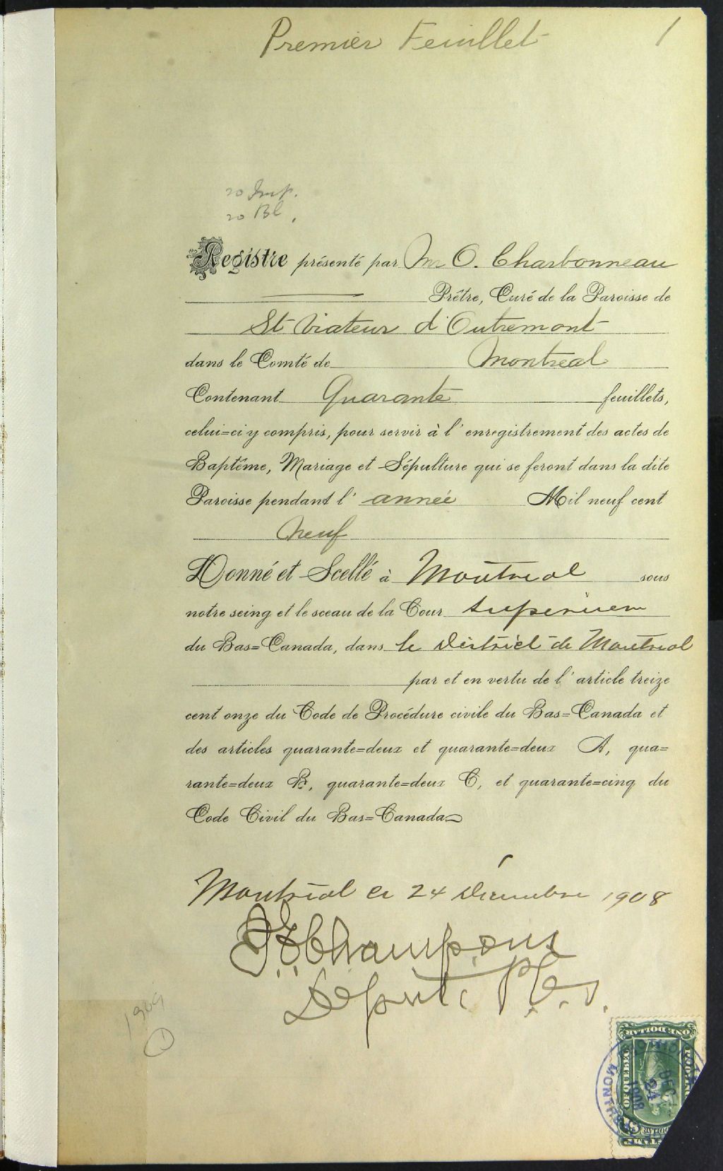 Saint-Viateur d'Outremont, 1902-1921, Archives nationales à Montréal, Fonds Cour supérieure. District judiciaire de Montréal. État civil, (06M,CE601,S246).
