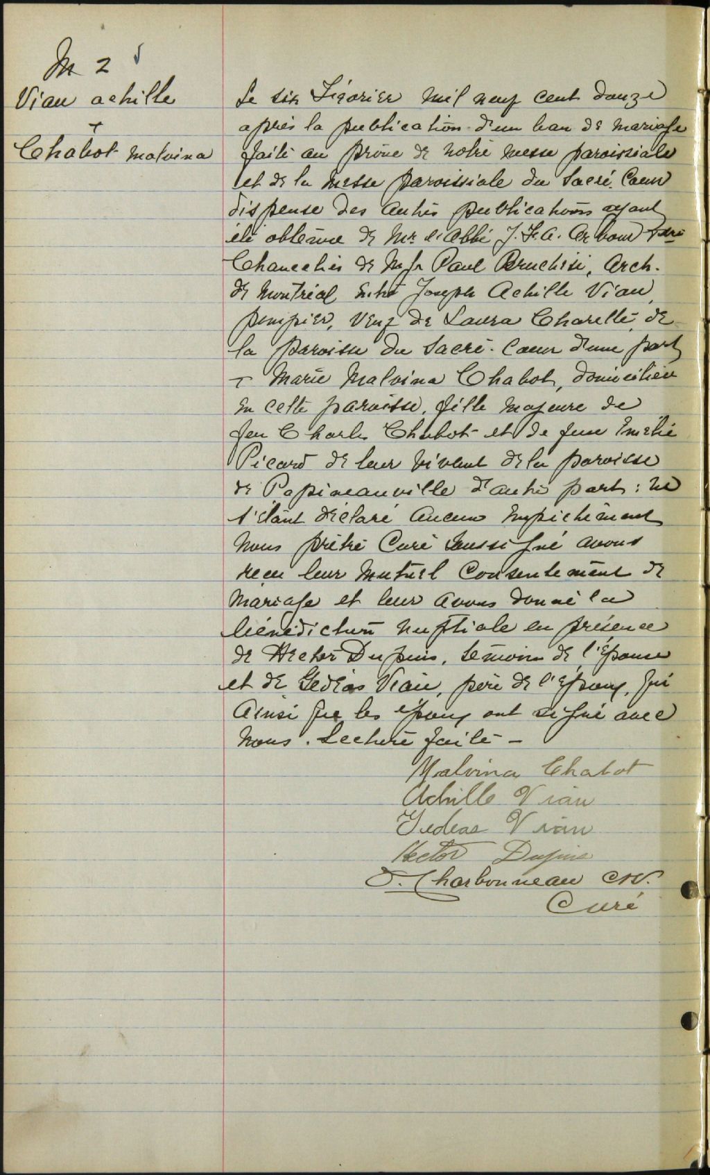 Saint-Viateur d'Outremont, 1902-1921, Archives nationales à Montréal, Fonds Cour supérieure. District judiciaire de Montréal. État civil, (06M,CE601,S246).