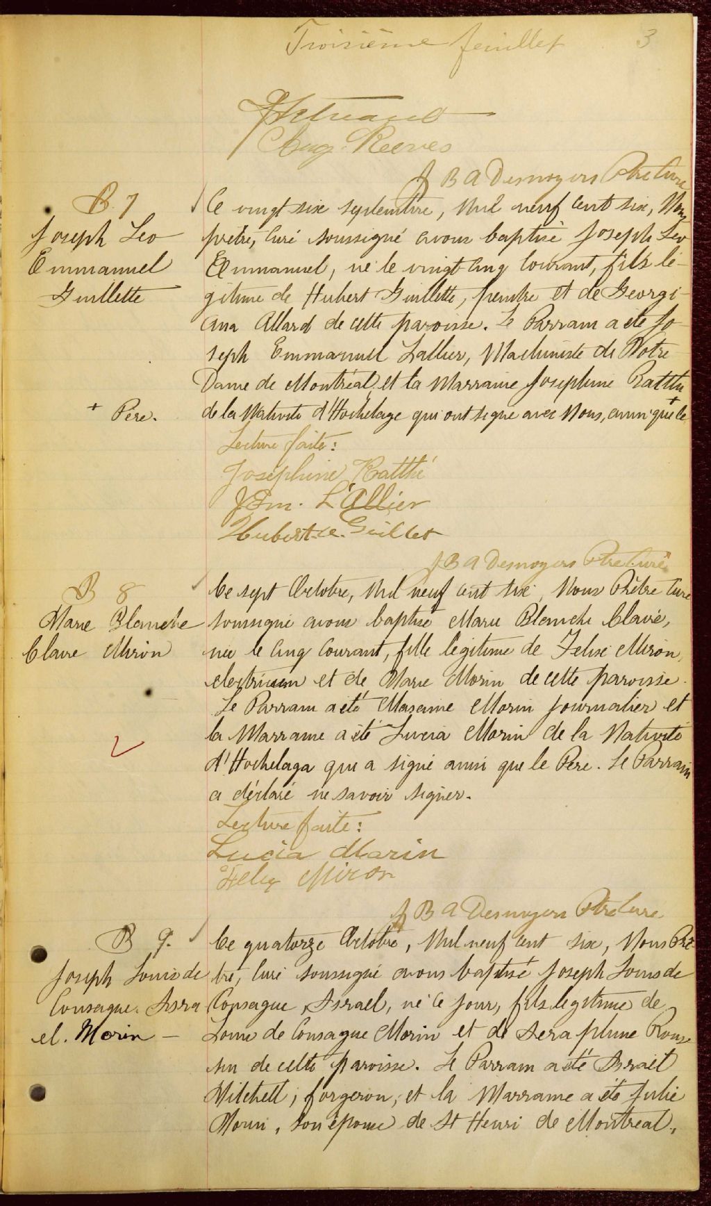 Sainte-Claire, 1906-1921, Archives nationales à Montréal, Fonds Cour supérieure. District judiciaire de Montréal. État civil, (06M,CE601,S248).