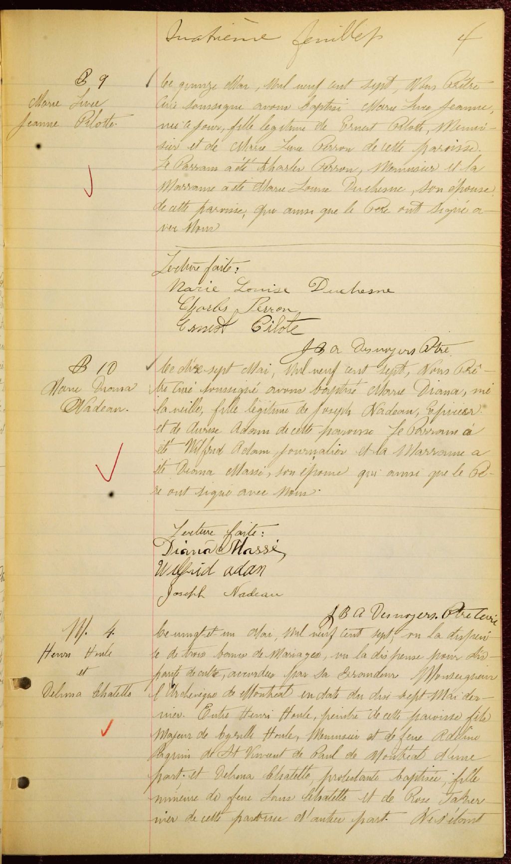 Sainte-Claire, 1906-1921, Archives nationales à Montréal, Fonds Cour supérieure. District judiciaire de Montréal. État civil, (06M,CE601,S248).