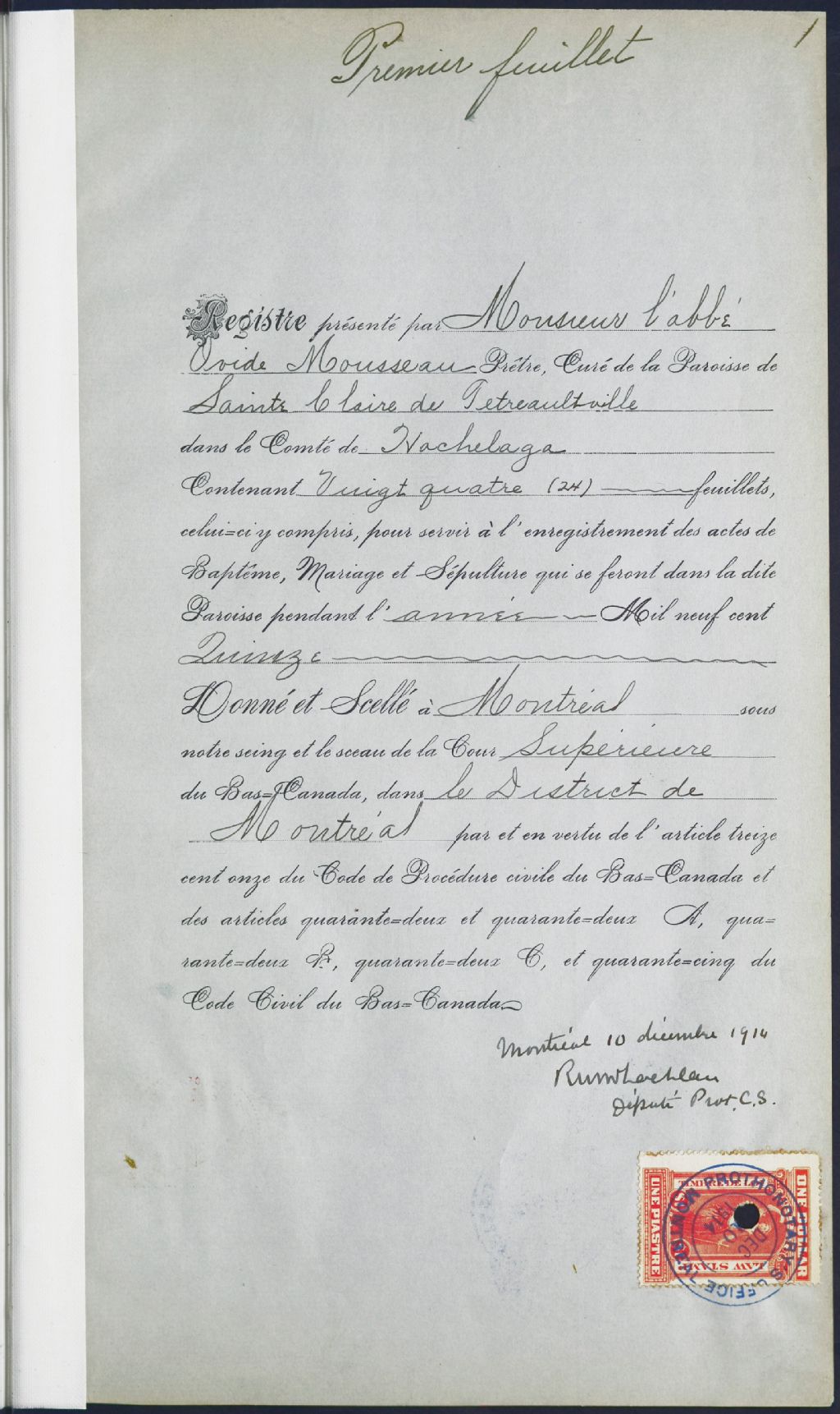 Sainte-Claire, 1906-1921, Archives nationales à Montréal, Fonds Cour supérieure. District judiciaire de Montréal. État civil, (06M,CE601,S248).
