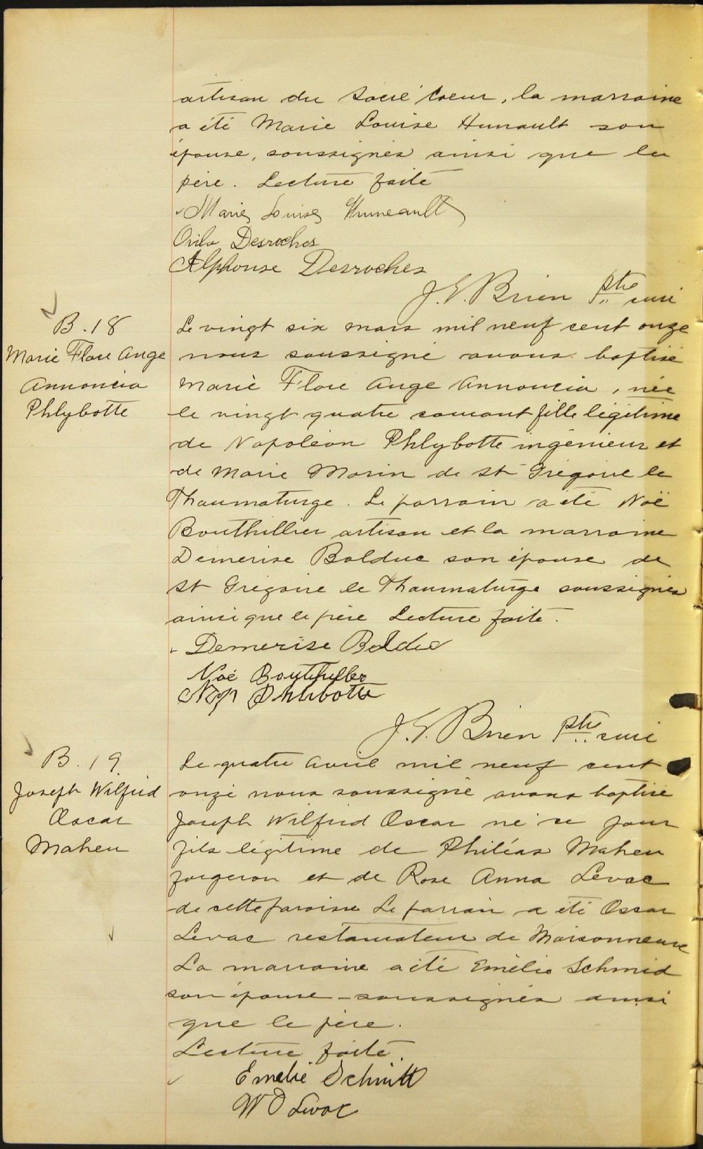 Sainte-Philomène-de-Rosemont, 1905-1921, Archives nationales à Montréal, Fonds Cour supérieure. District judiciaire de Montréal. État civil, (06M,CE601,S250).