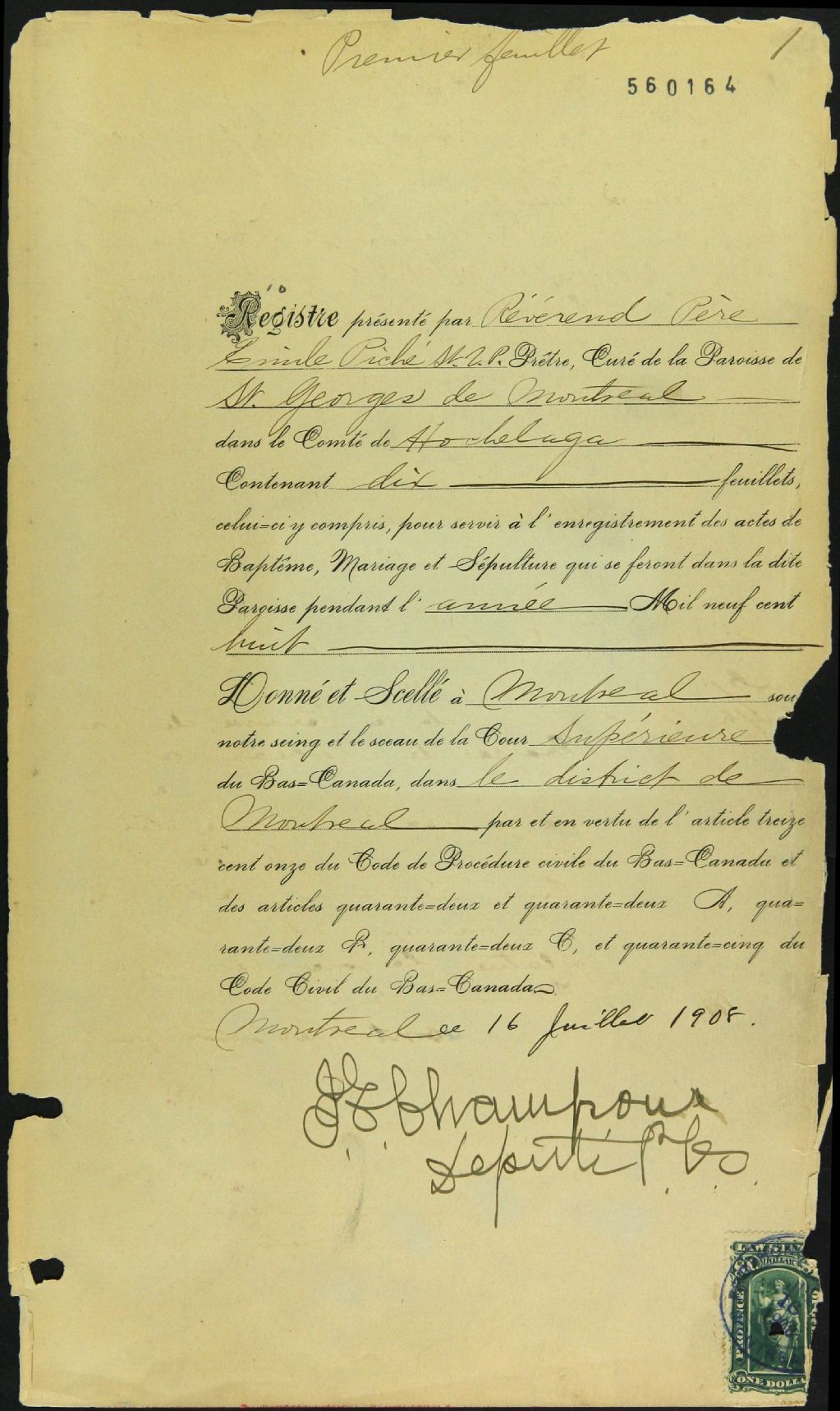Saint-Georges, 1908-1922, Archives nationales à Montréal, Fonds Cour supérieure. District judiciaire de Montréal. État civil, (06M,CE601,S258).