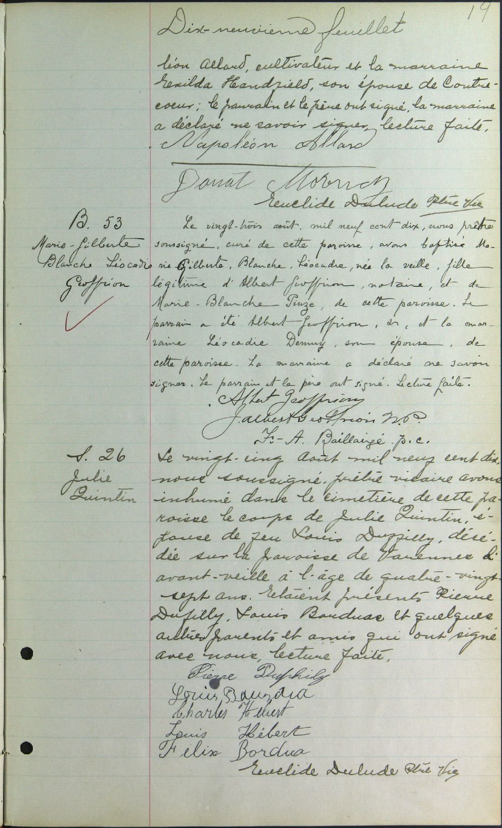 Saint-François-Xavier-de-Verchères, 1723-1923, Archives nationales à Montréal, Fonds Cour supérieure. District judiciaire de Montréal. État civil, (06M,CE601,S26).