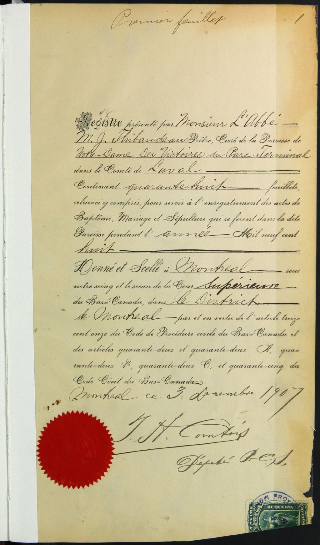 Notre-Dame-des-Victoires, 1907-1921, Archives nationales à Montréal, Fonds Cour supérieure. District judiciaire de Montréal. État civil, (06M,CE601,S261).