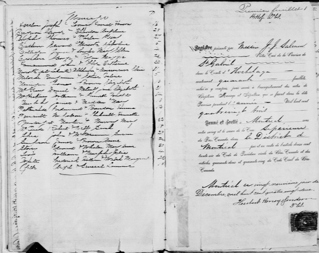 Saint-Gabriel, 1873-1922, Archives nationales à Montréal, Fonds Cour supérieure. District judiciaire de Montréal. État civil, (06M,CE601,S27).