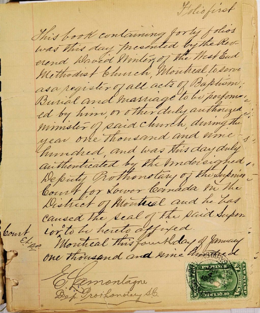 West End St-Joseph Methodist Church, 1900-1921, Archives nationales à Montréal, Fonds Cour supérieure. District judiciaire de Montréal. État civil, (06M,CE601,S275).