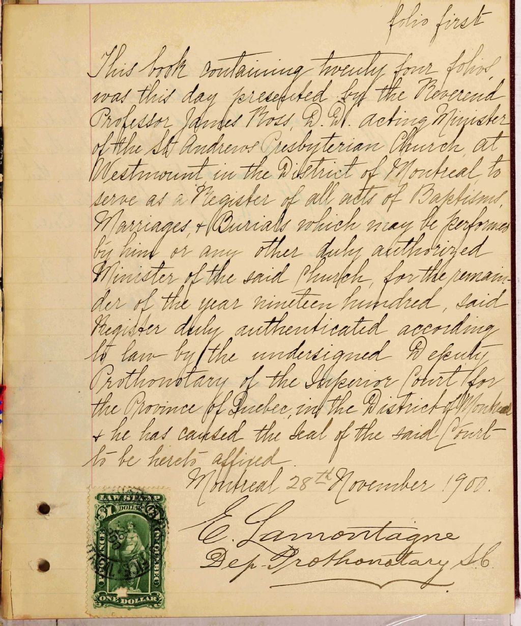 St. Andrew's Presbyterian Church, 1900-1921, Archives nationales à Montréal, Fonds Cour supérieure. District judiciaire de Montréal. État civil, (06M,CE601,S279).